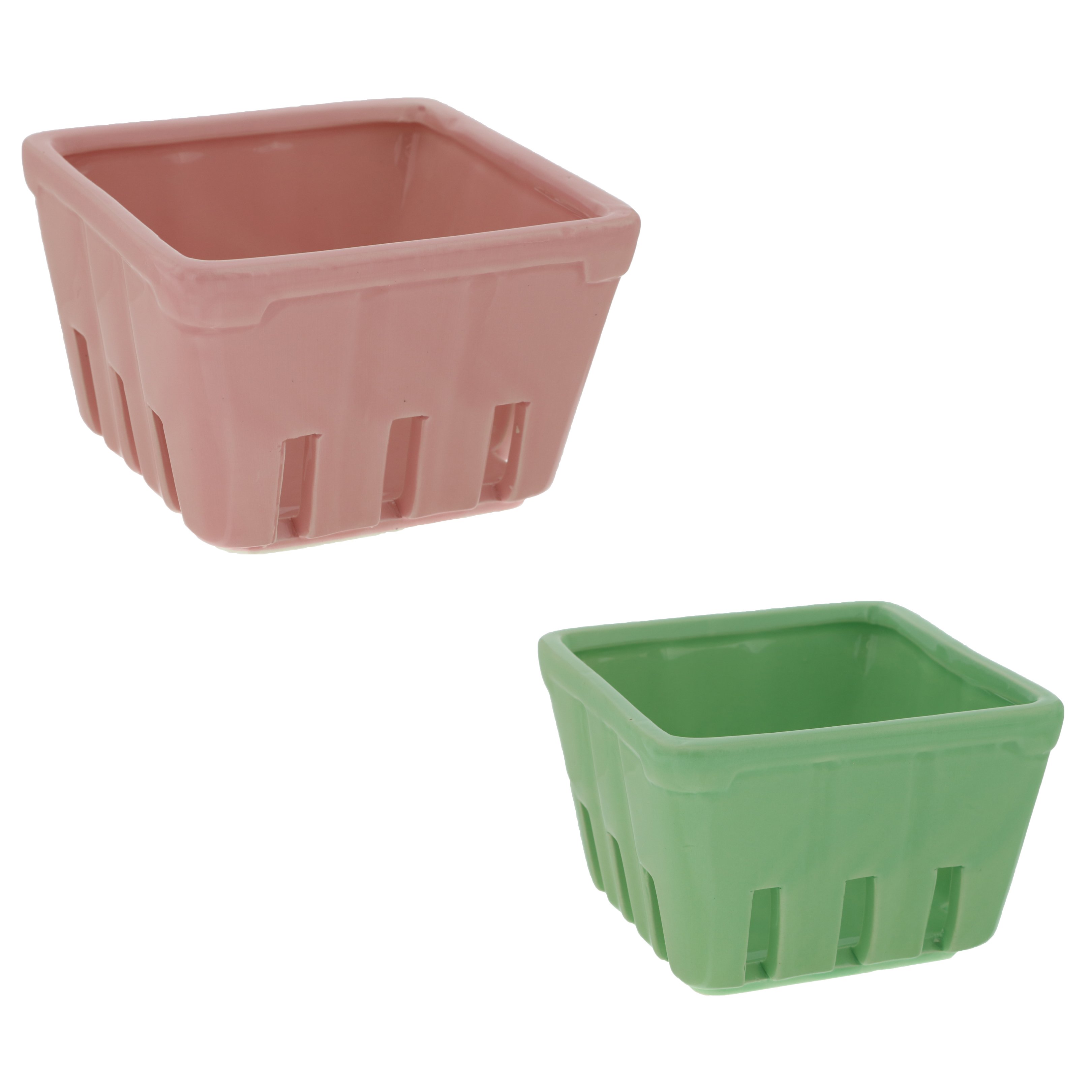 Set Of 2 Assorted Colors 4 Ceramic Market Fruit Berry Basket