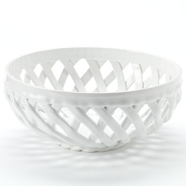 Ceramic Woven Bread Basket White Handmade One Chip 1756404076