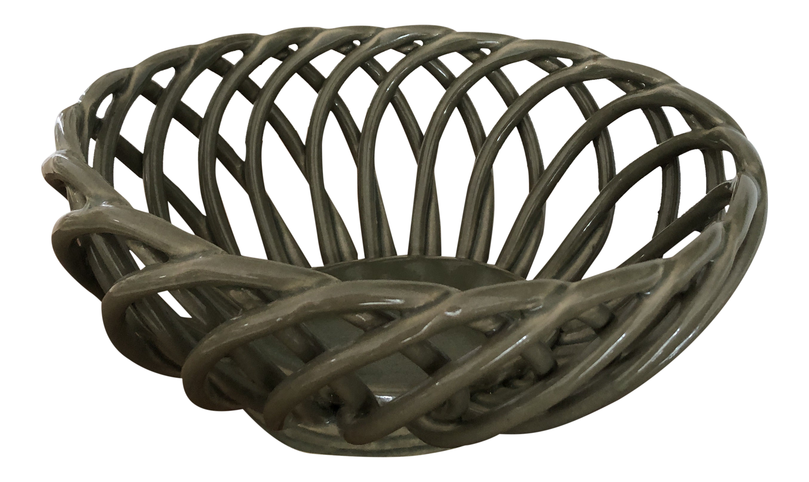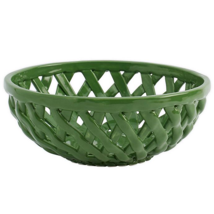 Lindsey Jordan Designs Green Ceramic Open Weave Fruit Bread Basket