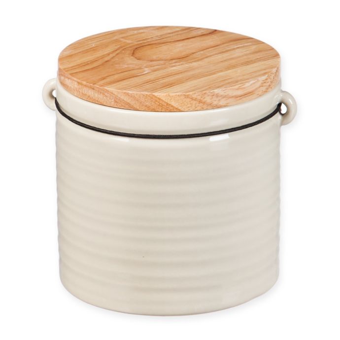 Cypress Home At Ease Ceramic Canister With Wood Lid In Grey Bed