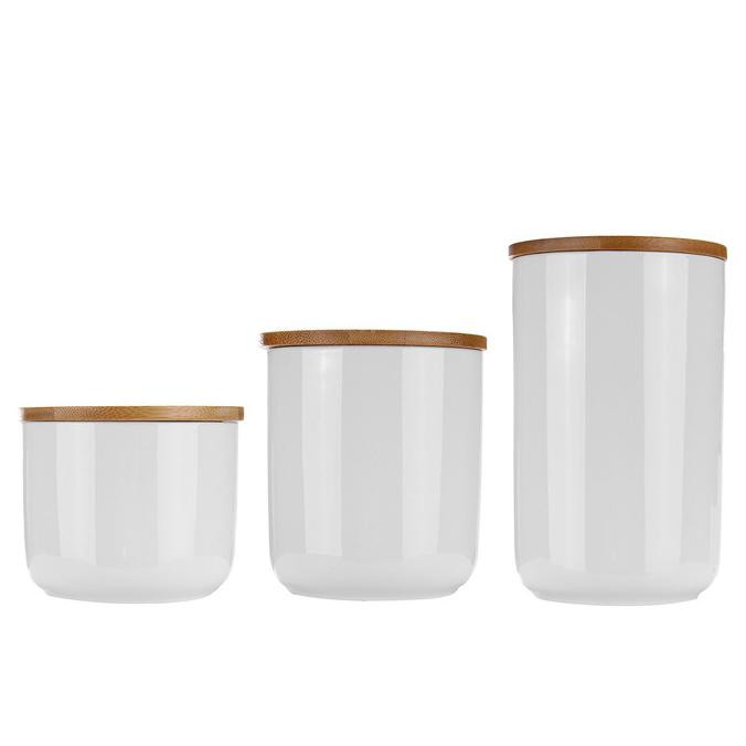 3 Piece Ceramic Kitchen Canisters Set With Wood Lid Porcelain
