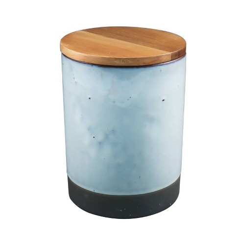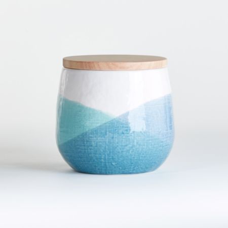 Niko Medium Blue Ceramic Canister With Wood Lid Reviews Crate
