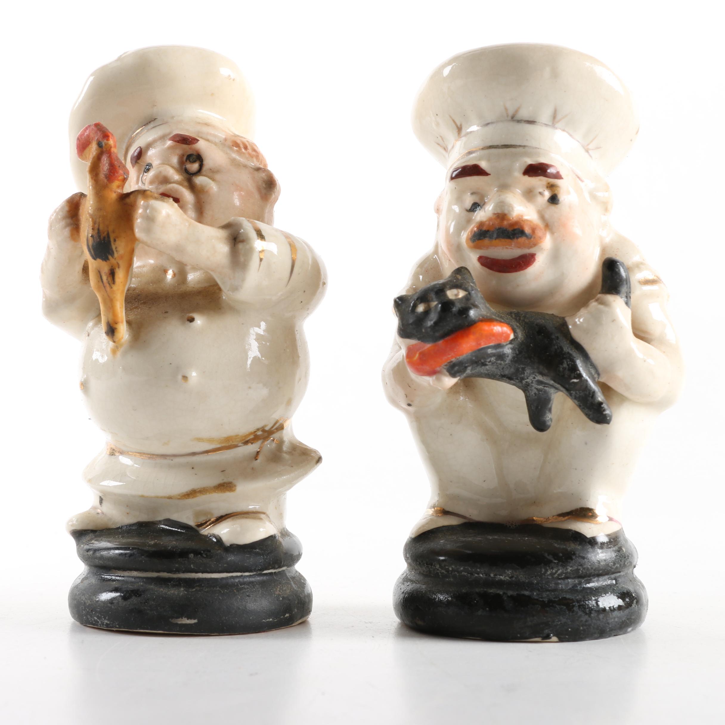 Pair Of Ceramic Chef Salt And Pepper Shakers Ebth