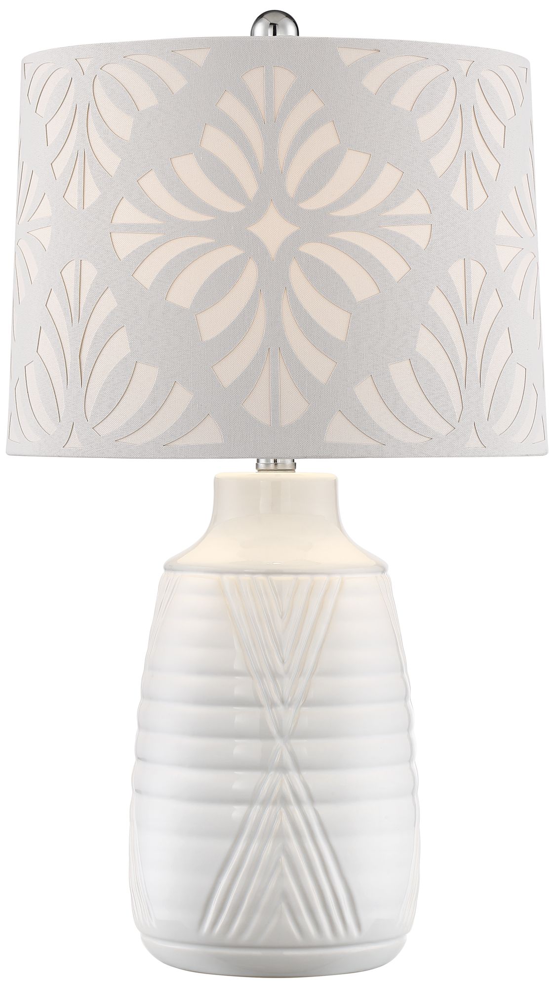 Abigail White Ceramic Table Lamp With Cutout Patterned Shade