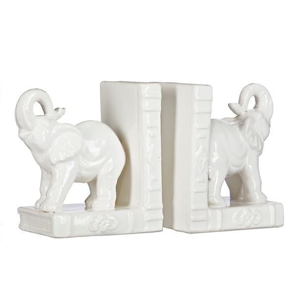 China Decorative 2pcs White Glazed Ceramic Elephants Bookend