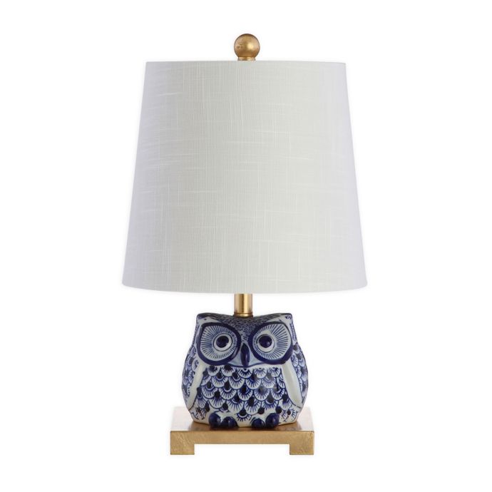 Jonathan Y Sophocles Mini Ceramic Owl Table Lamp In Blue With