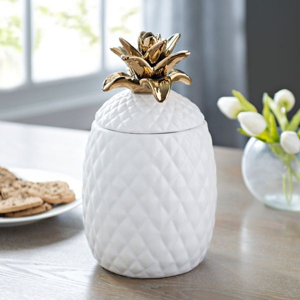 White And Gold Ceramic Pineapple Cookie Jar Kirklands