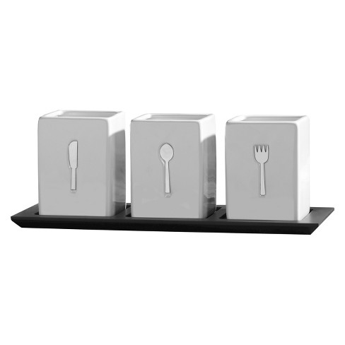 4 Piece Ceramic Flatware Caddy Set World Market 15 Ceramic