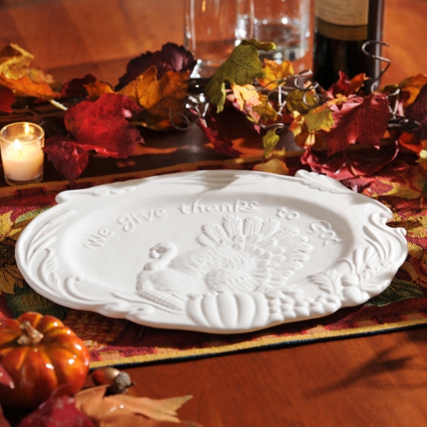 Ceramic Turkey Platter Classics White Embossed Housewares
