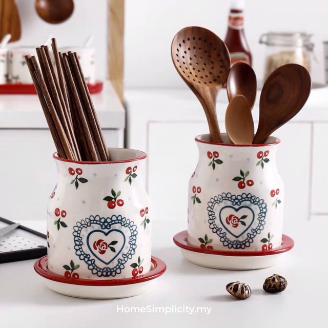 Home Simplicity Heart Ceramic Kitchen Utensil Holder Shopee
