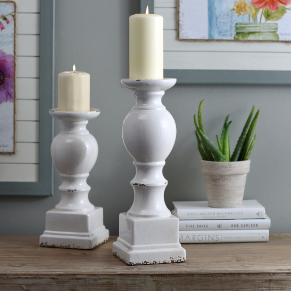White Ceramic Candlestick Holders