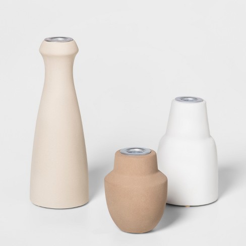 3pc Earthenware Candle Holder Stand Set Brown White Project 62