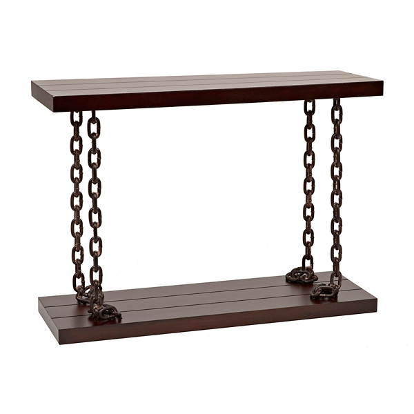 Solid Steel Chain Link Effect Based Console Table With Solid Wood