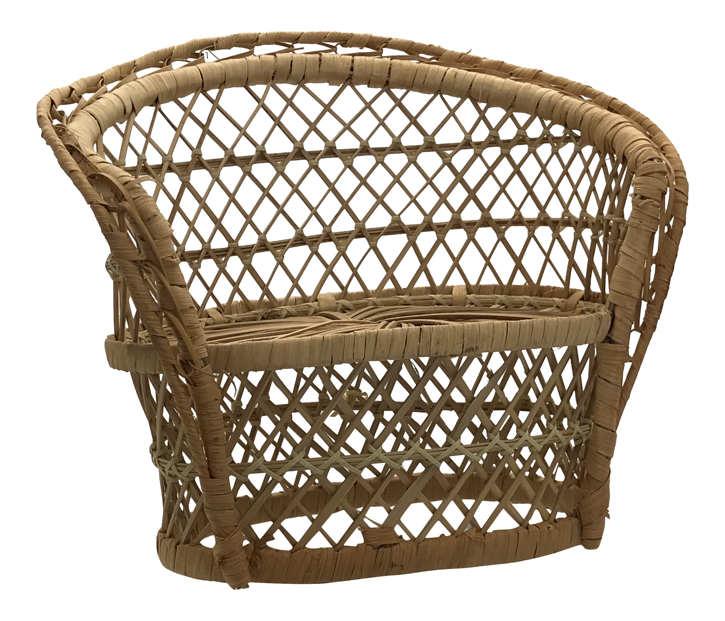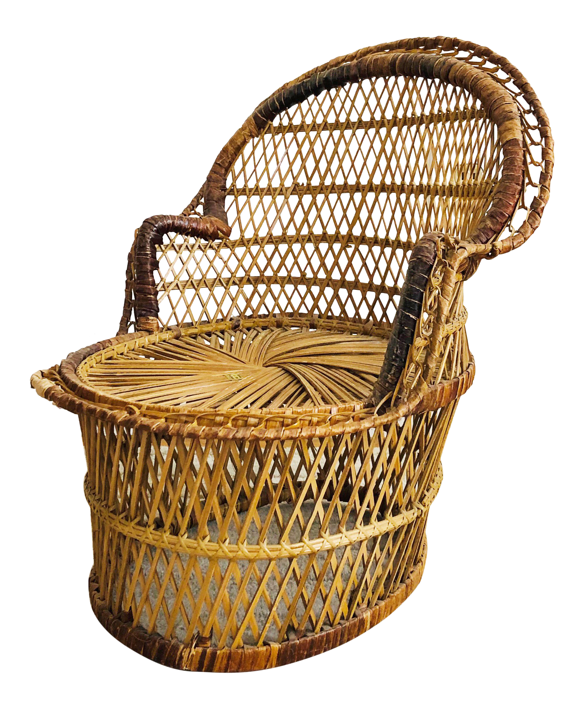 Vintage Wicker Rattan Miniature Peacock Fan Back Doll Chair Plant