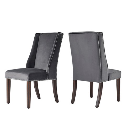 Set Of 2 Harlow Velvet Wingback Dining Chair With Nailheads Dark Gray Inspire Q Target
