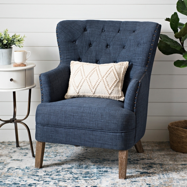Navy Tufted Accent Chair With Nailhead Trim Kirklands