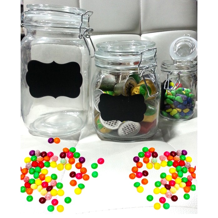 China Big Size Storage Chalkboard Label Glass Canister With Clip