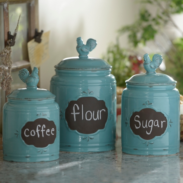 Aqua Rooster Canisters Set Of 3 Kirklands