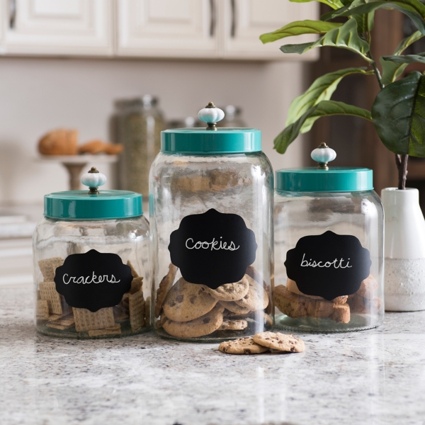 Turquoise Chalkboard Kitchen Canisters Set Of 3 Blauwgroene