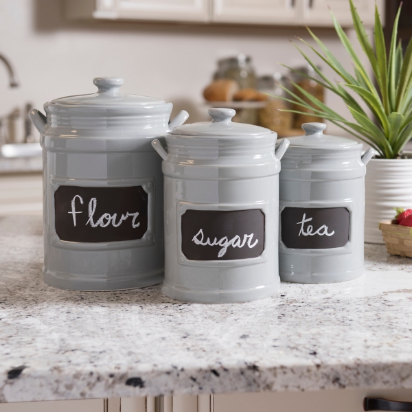Gray Chalkboard Kitchen Canisters Set Of 3 Kitchen Canisters