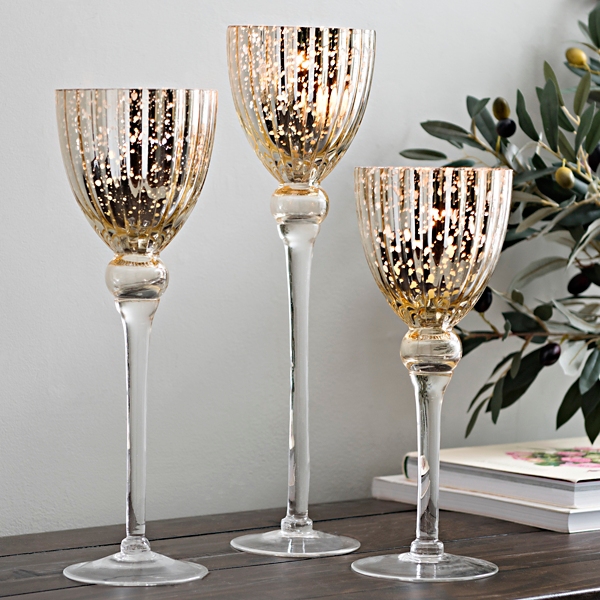 Buy Gerson 2491970 Champagne Mercury Glass Goblet Candleholders
