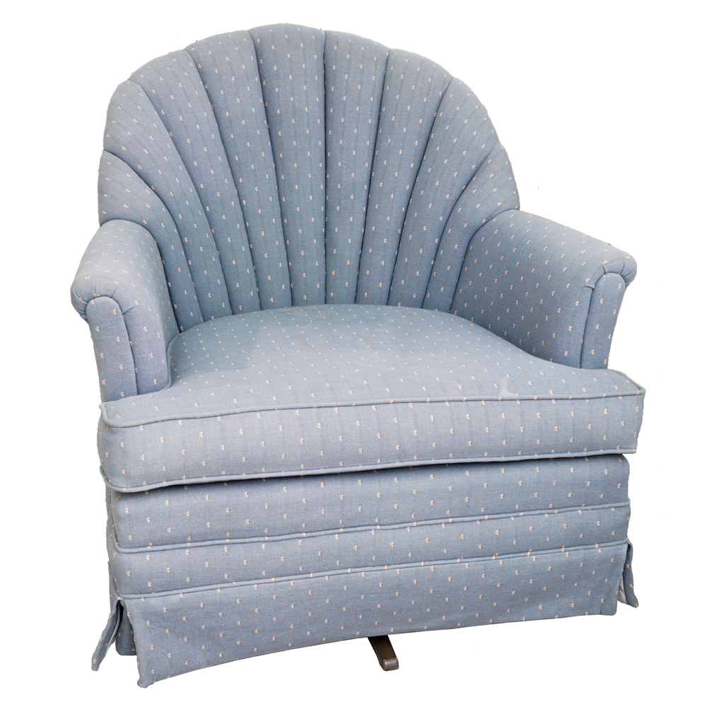 Large 1980s Channel Tufted Scalloped Swivel Club Chair For Sale At