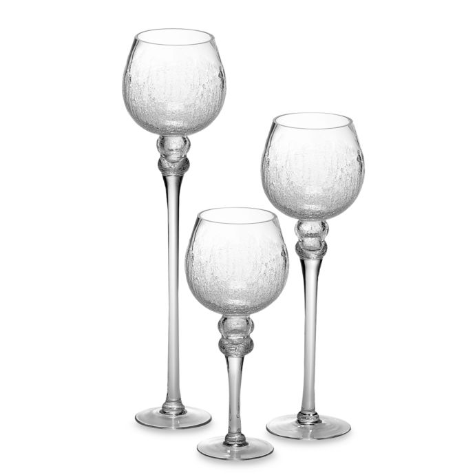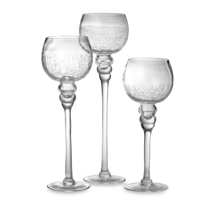 Charisma Crackled Glass Candleholders Set Of 3 Bed Bath Beyond