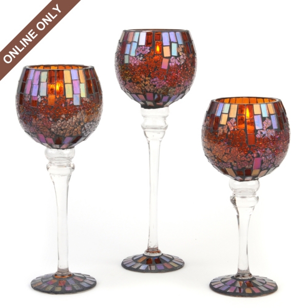 Candles Candle Holders Set Of Three Crackle Gold Glass