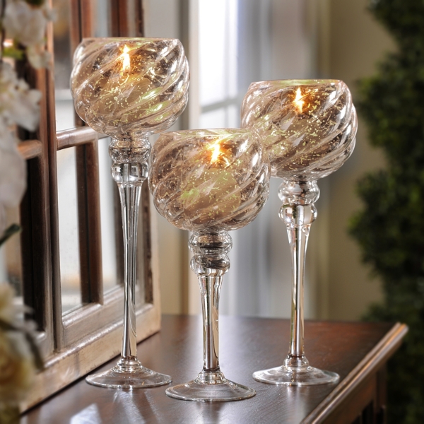 Cys Metallic Mercury Glass Candle Holders Traditional