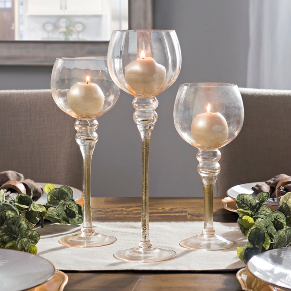 Home Essentials 3pc Glass Charisma Hurricane Candle Holders Set