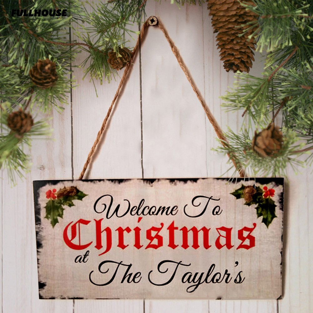 Wooden Merry Christmas Hanging Board Pendant Home Shop Door Wall