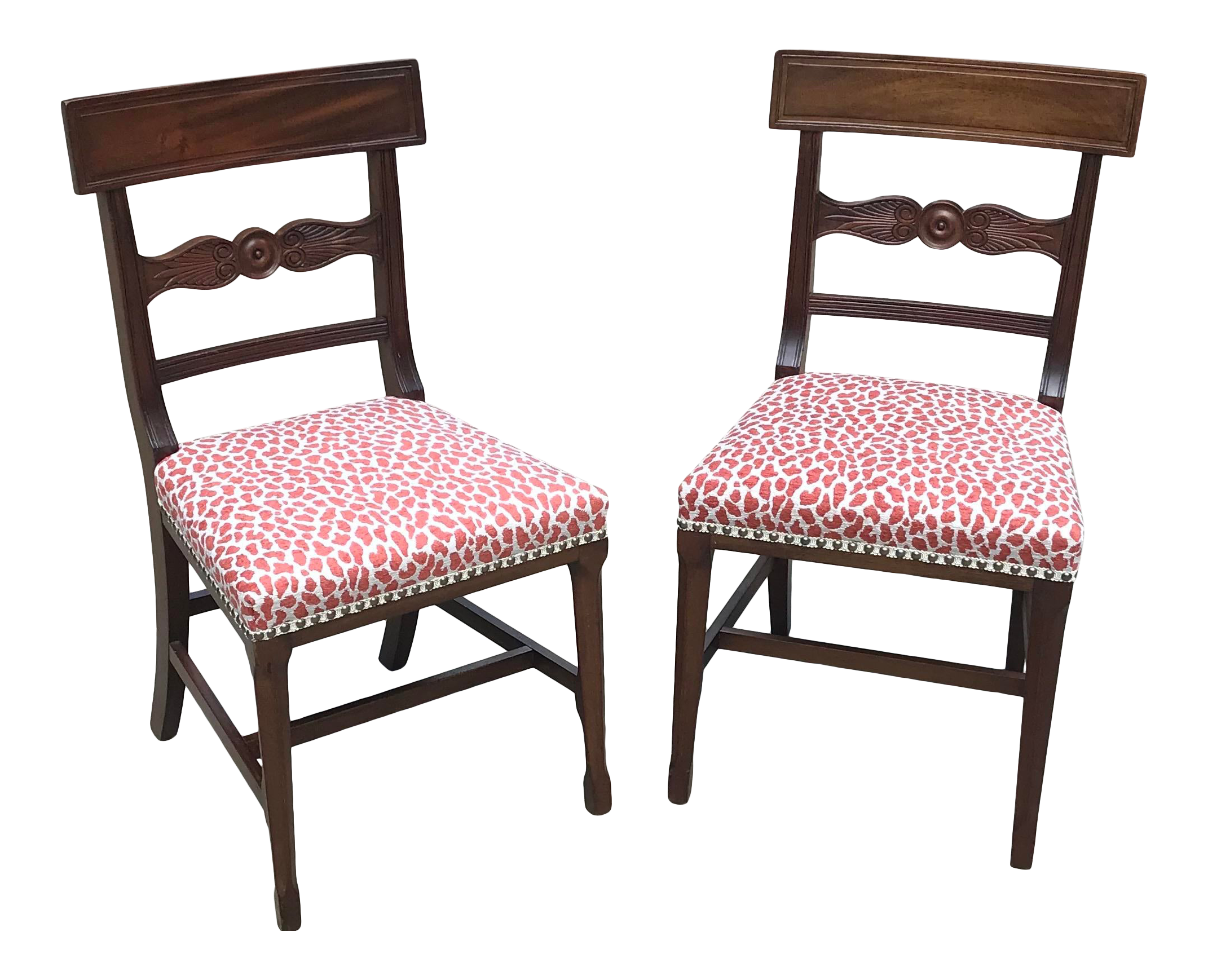 Regency Mahogany Dining Chairs With New Animal Print Upholstery A Pair Chairish