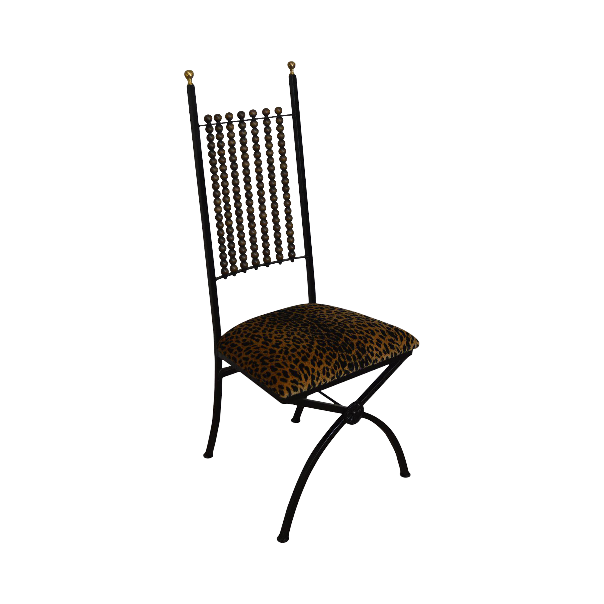 Hollywood Regency Vintage Wrought Iron X Base Cheetah Print Chair Chairish