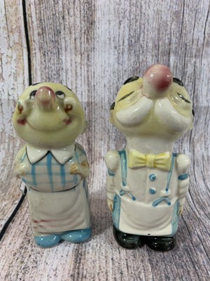 Mid Century Porcelain Chefs Salt Pepper Shakers Cottage