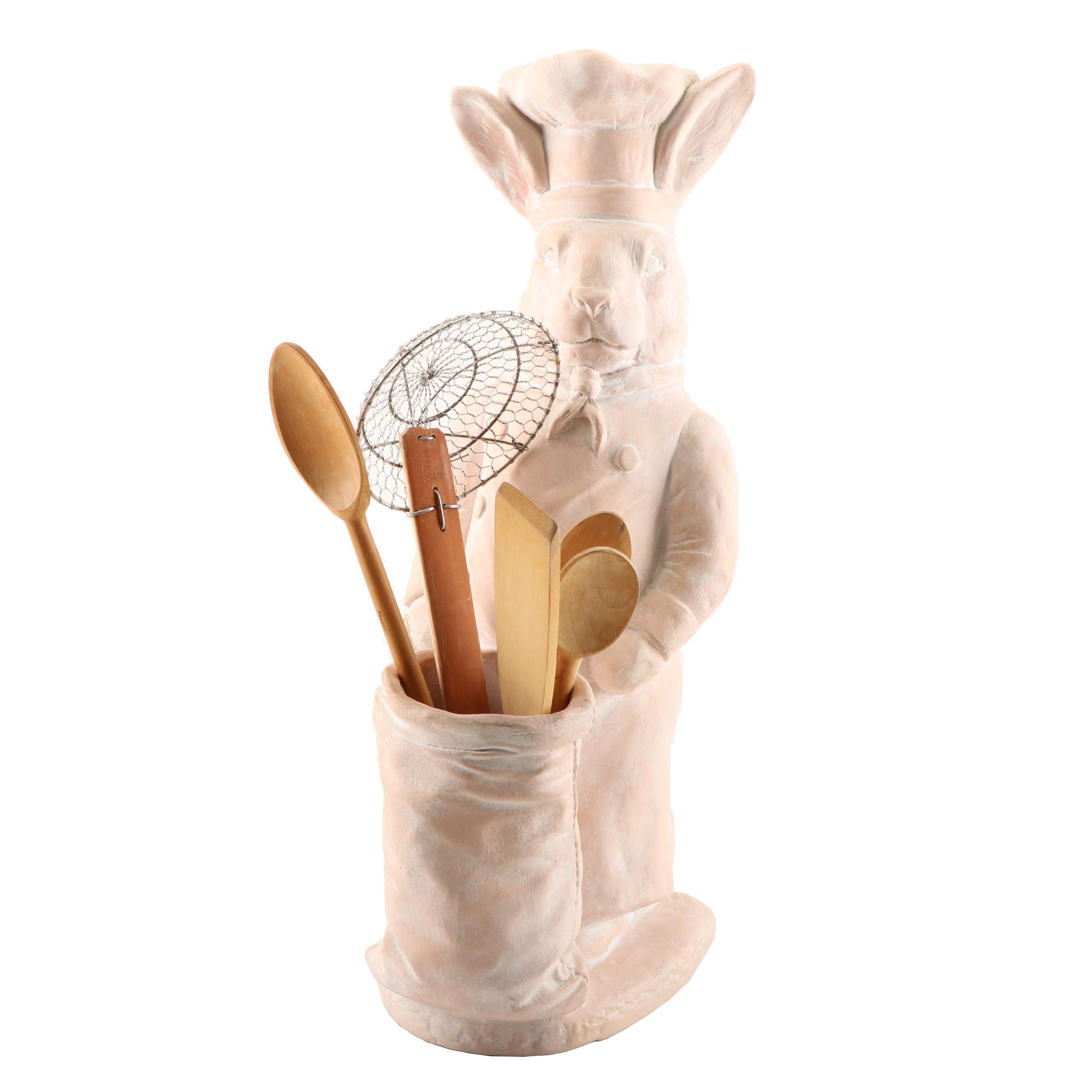 Terracotta Bunny Chef Utensil Holder Ebth