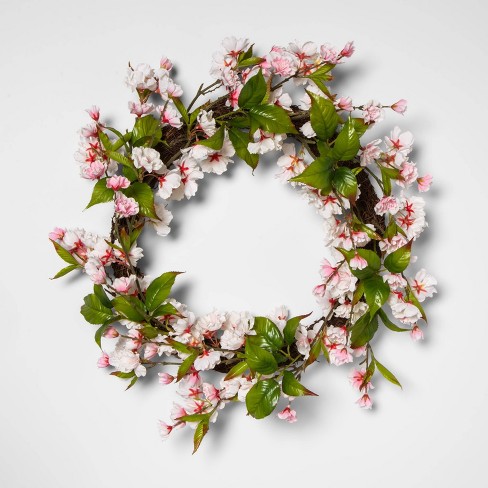18 Artificial Cherry Blossom Wreath Pink Green Threshold Target