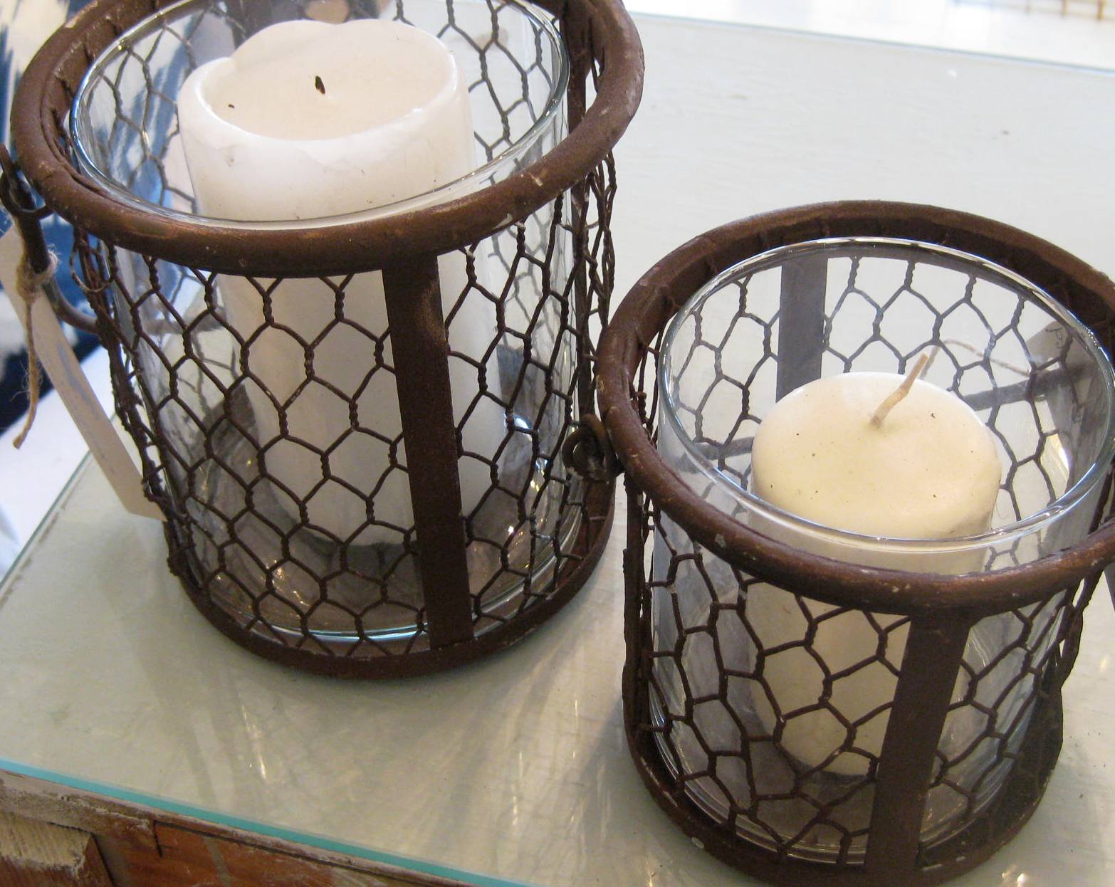 Rustic Chicken Wire And Glass Candle Holder Candles And