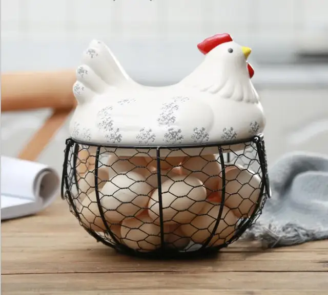 Ceramic Egg Holder Chicken Wire Egg Basket Fruit Basket Creative