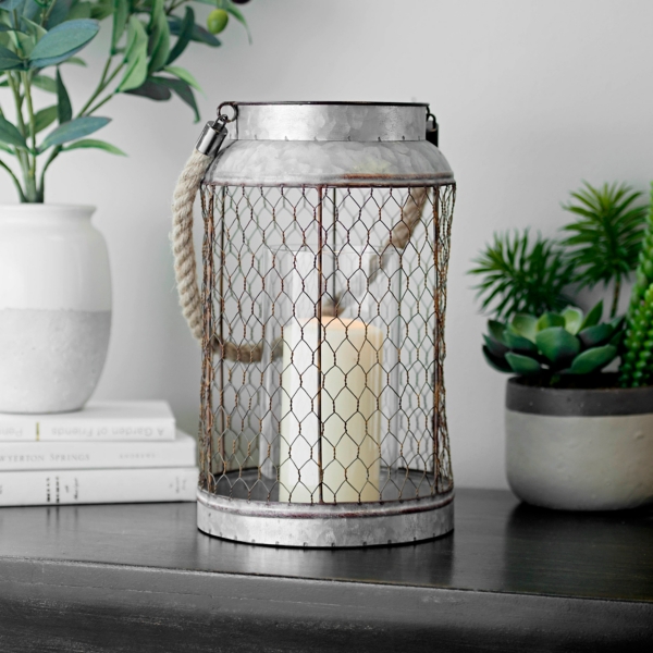 Metal Chicken Wire Rope Handle Lantern Kirklands