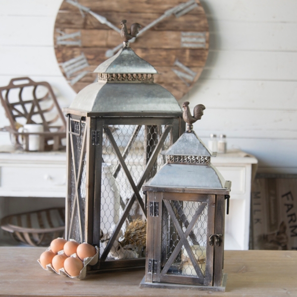 Country Decor Chicken Wire Decorative Metal Lanterns Set Of 2