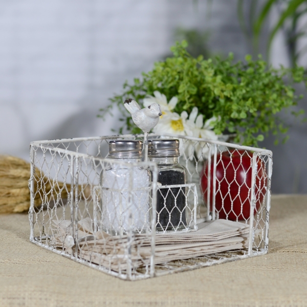 Rustic Chicken Wire Napkin And Salt And Pepper Holder For