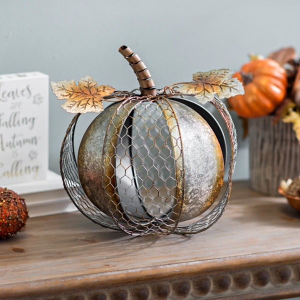 Chicken Wire Pumpkin W Candle Simple Pleasures Bountiful Treasures