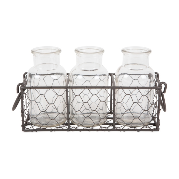 Gray Chicken Wire Caddy With Three Vases Kirklands