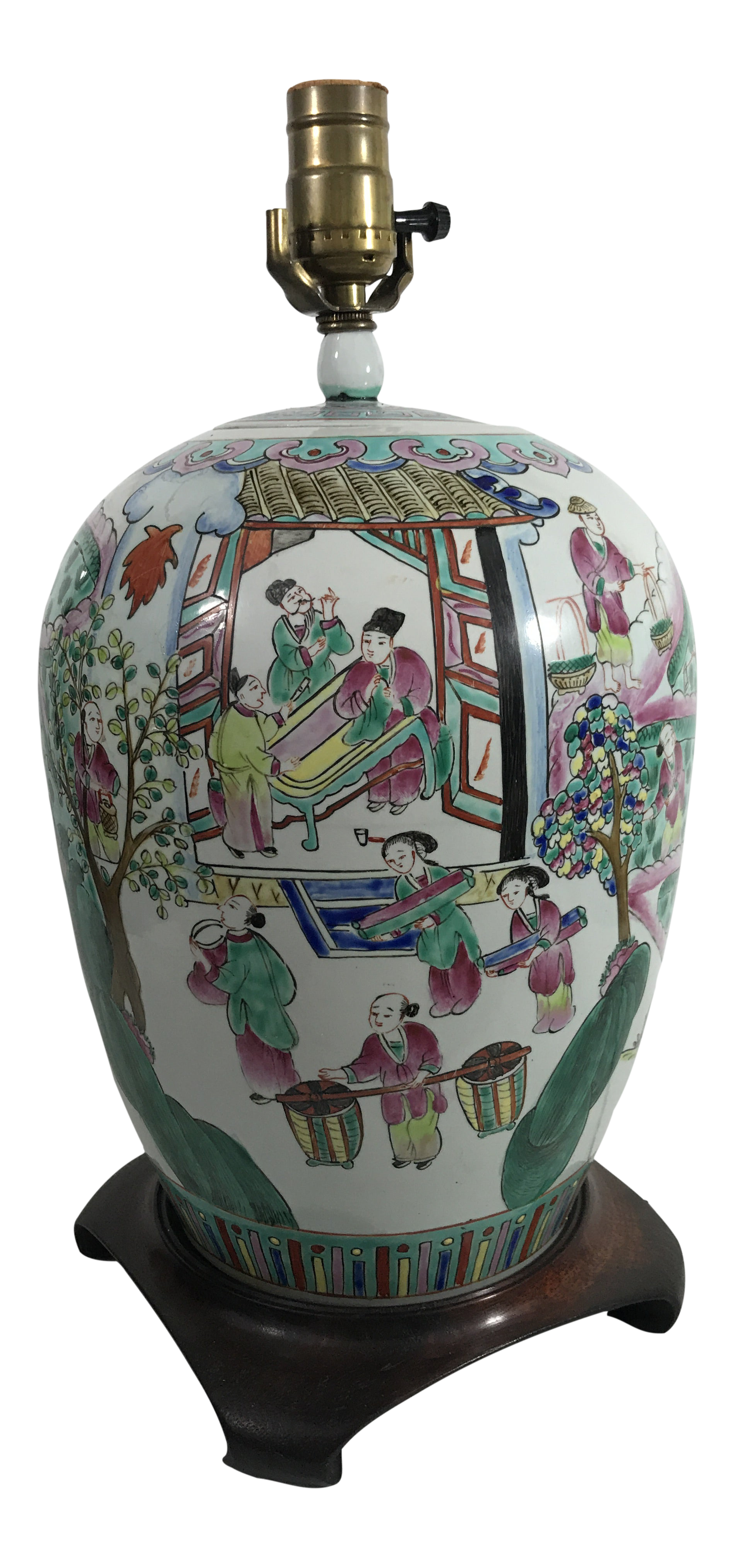 19th Century Chinese Hand Painted Ginger Jar Lamp Chairish