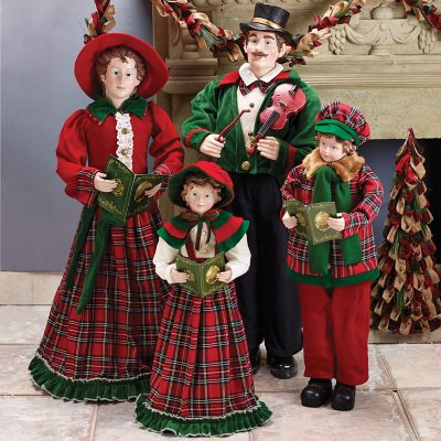Velvet Plaid Christmas Caroler Statues Set Of 4 Kirklands