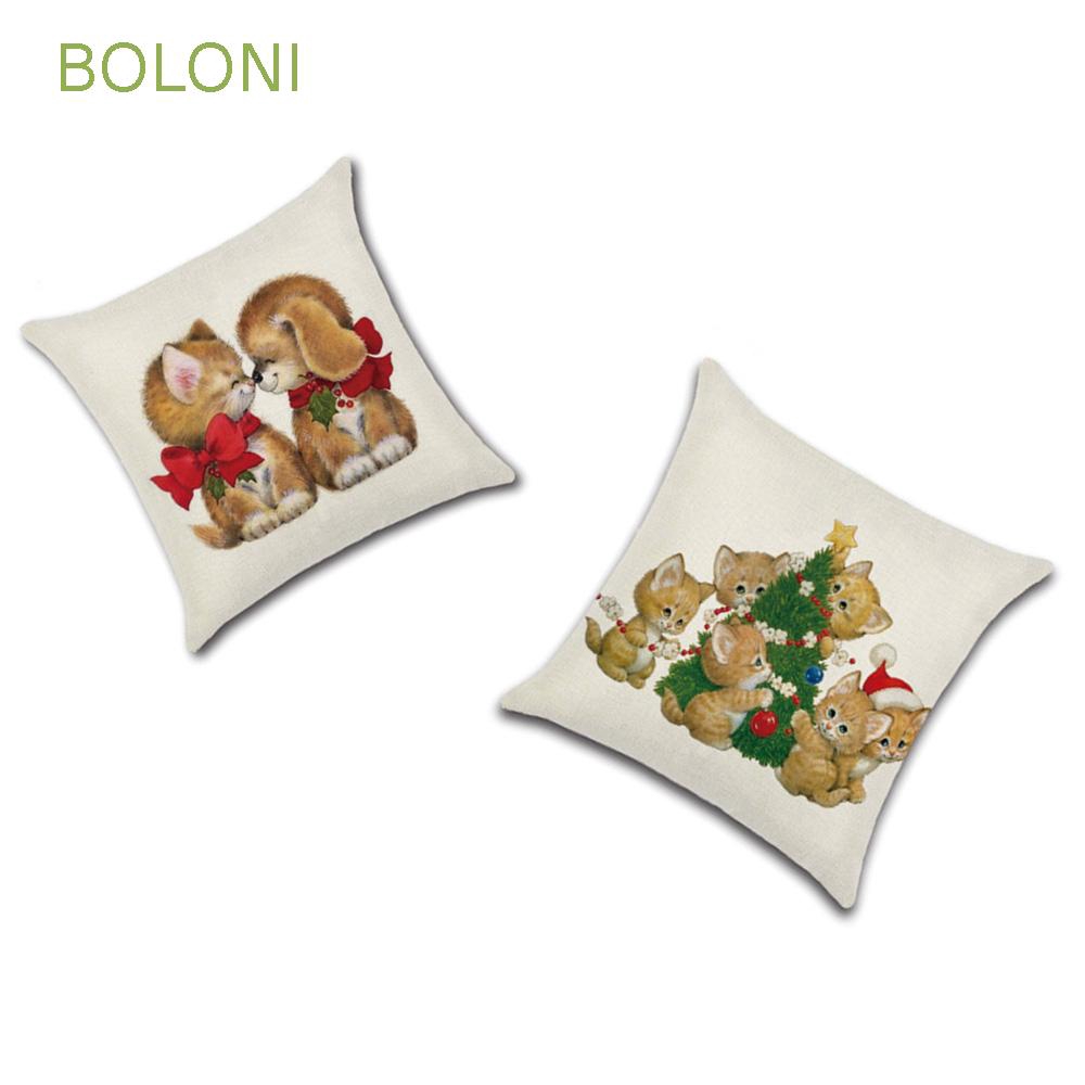 Boloni Cotton Linen Soft Zipper Christmas Cat Dog Design Pillow