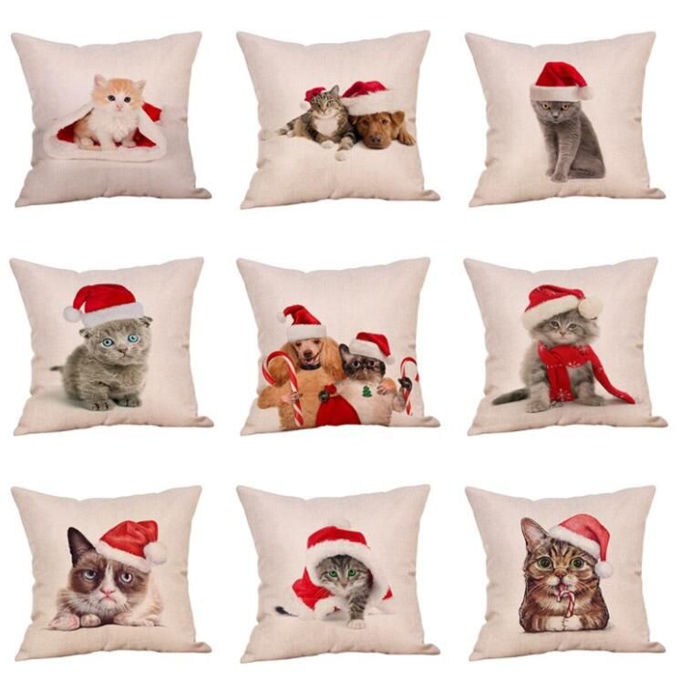Pillow Cases 45 45cm Christmas Cat Series Pillow Case Xmas Gift