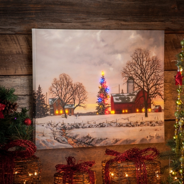 Led Lighted Canvas Wall Art Snowy Christmas Barn Collections Etc