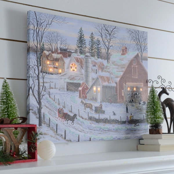 Country Rustic Winter Christmas Led Lighted Canvas Wall Art 23 5