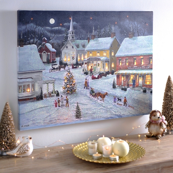 Christmas Eve Town Led Canvas Art Print Navideno Navidad